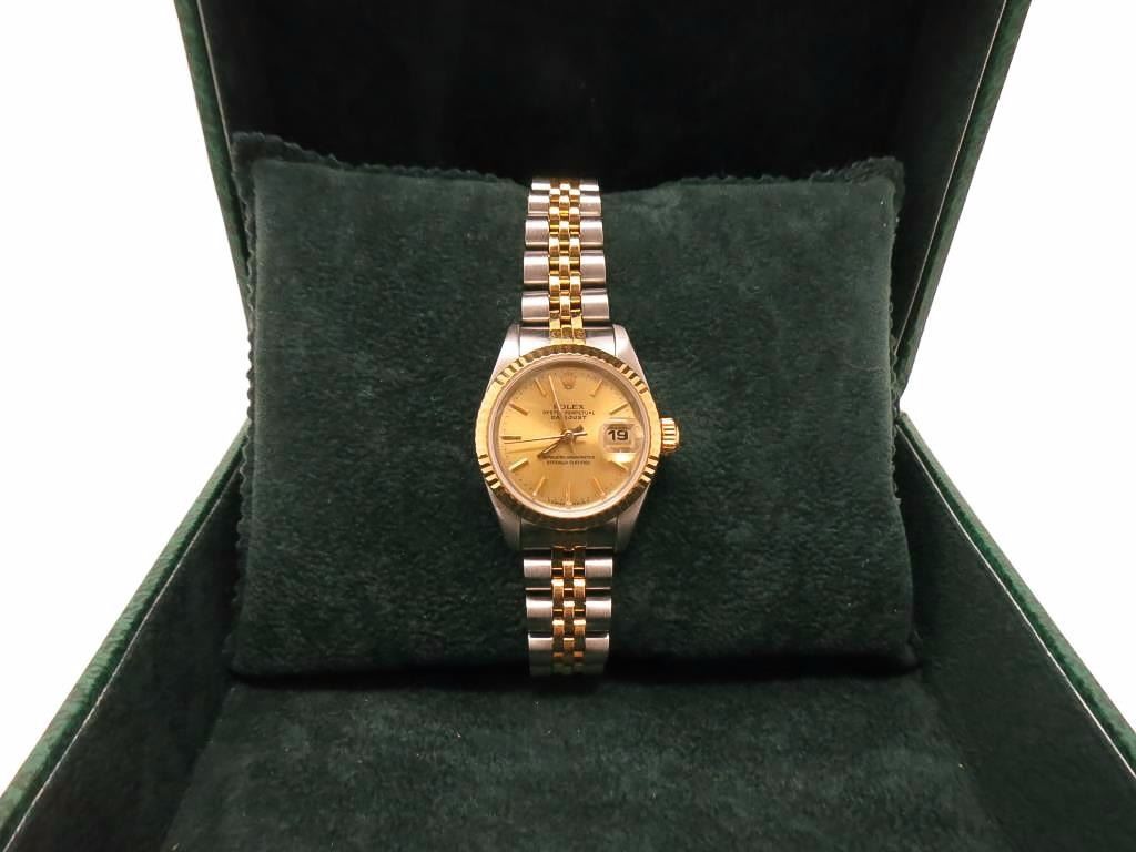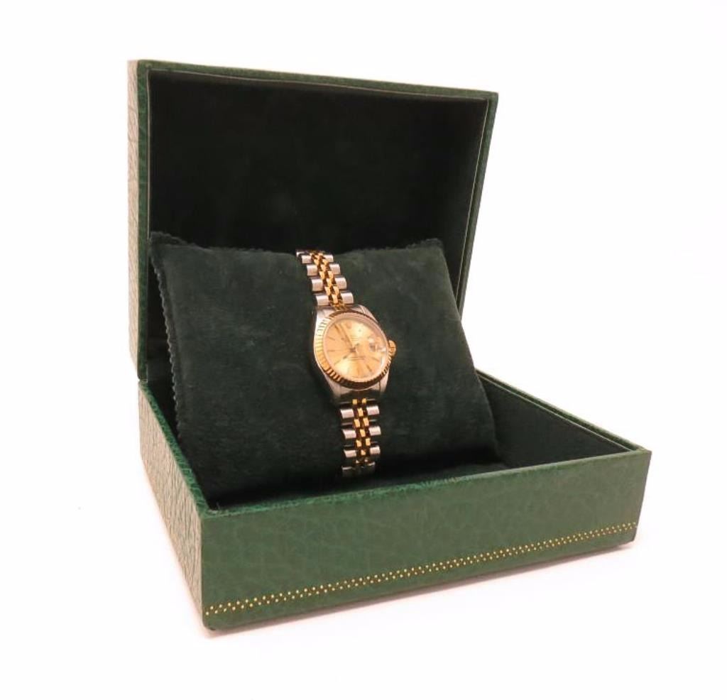 Date Just wristwatch with it's original green box. Clean and in fine condition. It looks new. Runs fine.