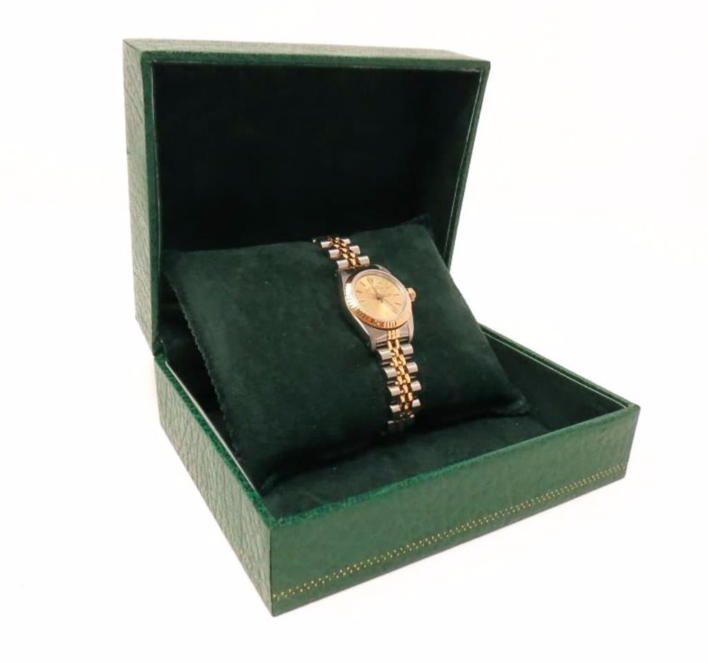 "Oyster Perpetual" wristwatch in the original green box and documents. It looks like a new watch. Fine condition.