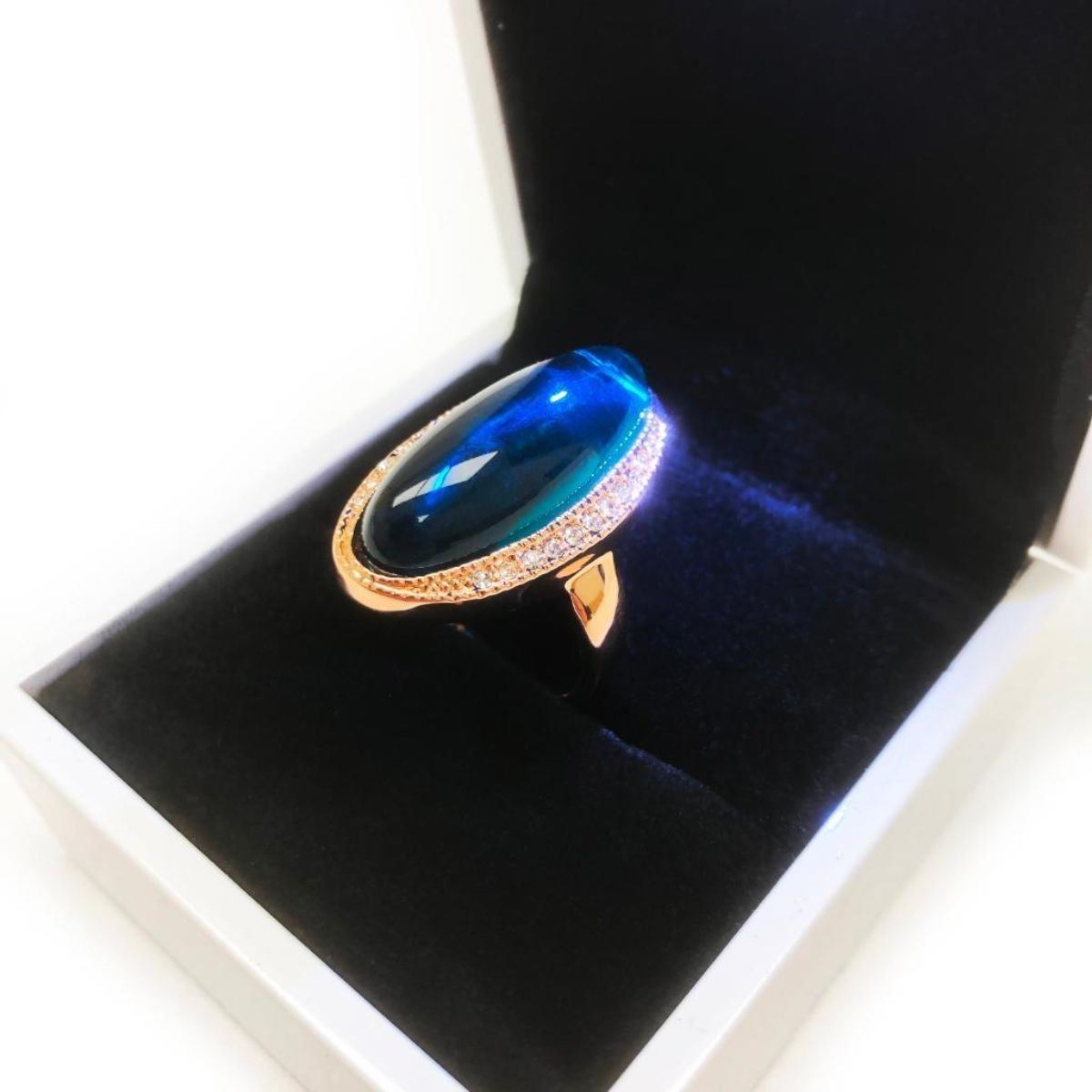 A Ladies Rose Gold Ring With Mounted Green Semi-Precious Stone. View Photos For Details.