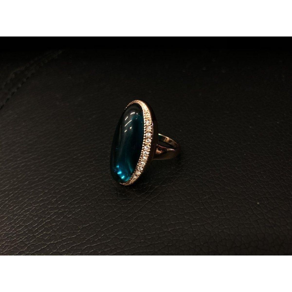 A Ladies Rose Gold Ring With Mounted Green Semi-Precious Stone. Comes in White Enameled LED Ring Box. View Photos For Details.