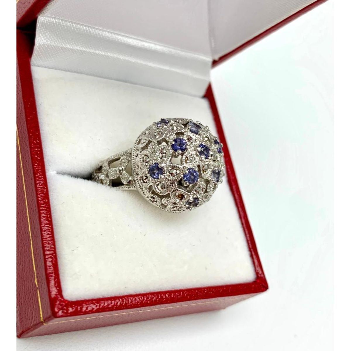 Ladies Size 7 Round Cut Amethyst set 925 Silver Dome Style Ring. Amethyst healing properties are as plentiful as the stone itself. It is thought of mostly as a protective stone. As it is linked to the crown chakra, it is helpful in purifying the mind and clearing it of negative thoughts. This includes the negativity of stress and anxiety, which is why many meditate with amethyst so as to rid themselves of that darkness. This ring holds 11 stones in total. Please view photos for further details.Â