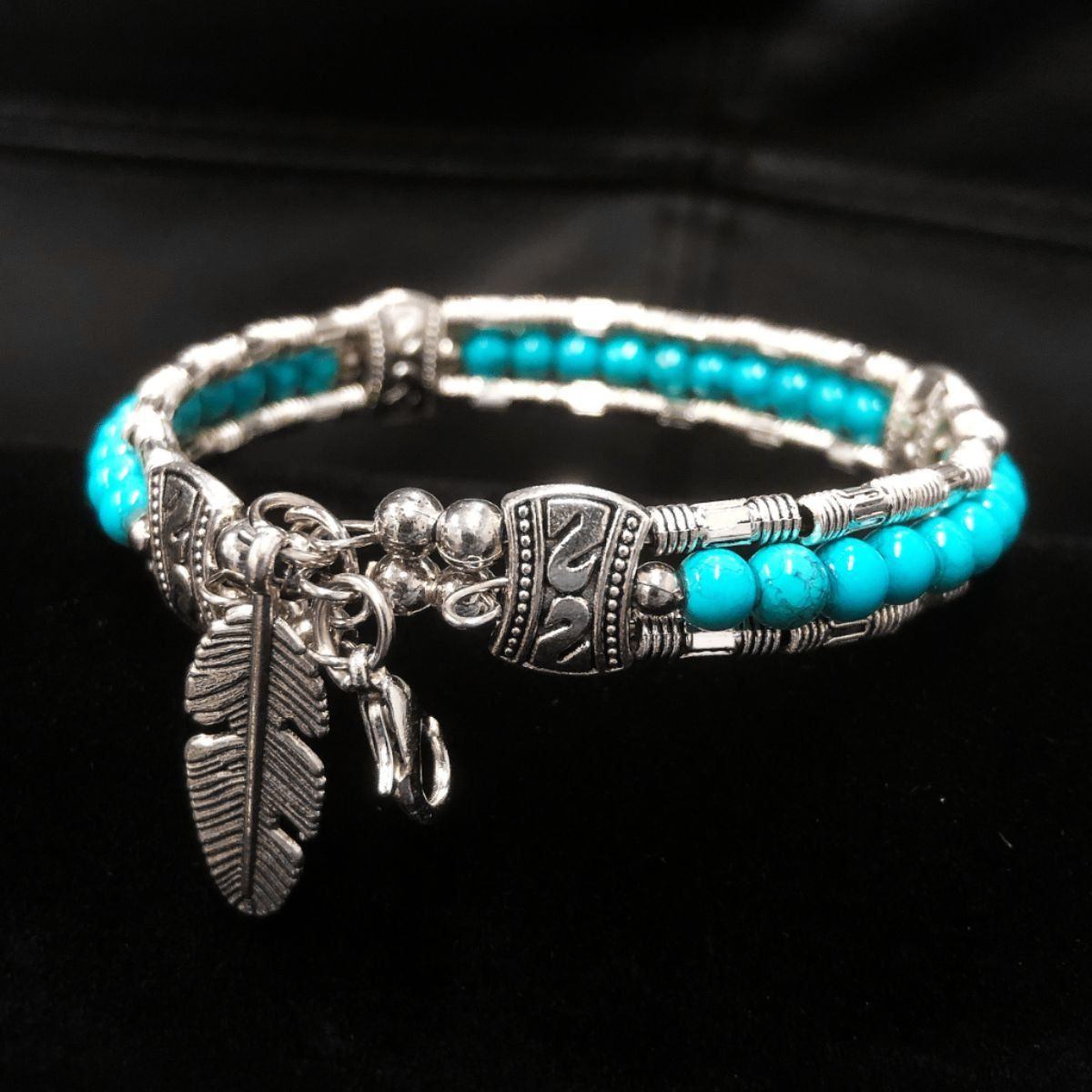 Ladies Turquoise Bead Tibetan Silver Bracelet. View Pictures For Further Details.