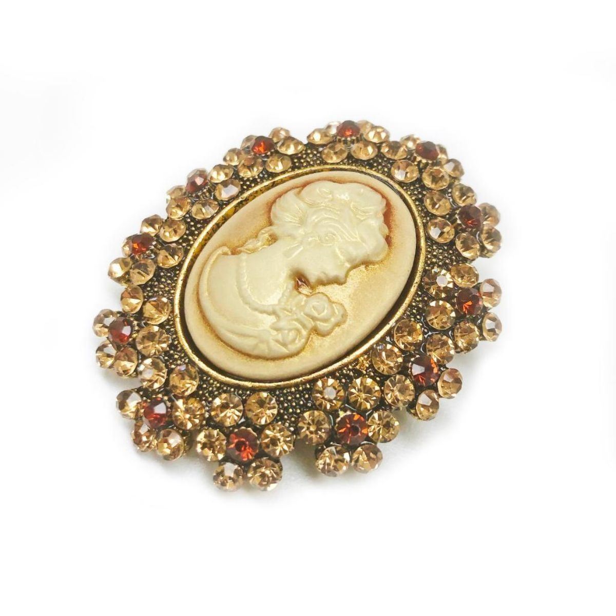 A Ladies Silhouetted Rhinestone Cameo Pendant Broach. Boarder Of The Cameo Is Inset With Whinstone's and Catches The Eye As Light Hits It. Broach Is In Excellent Condition. View Photos For Further Details