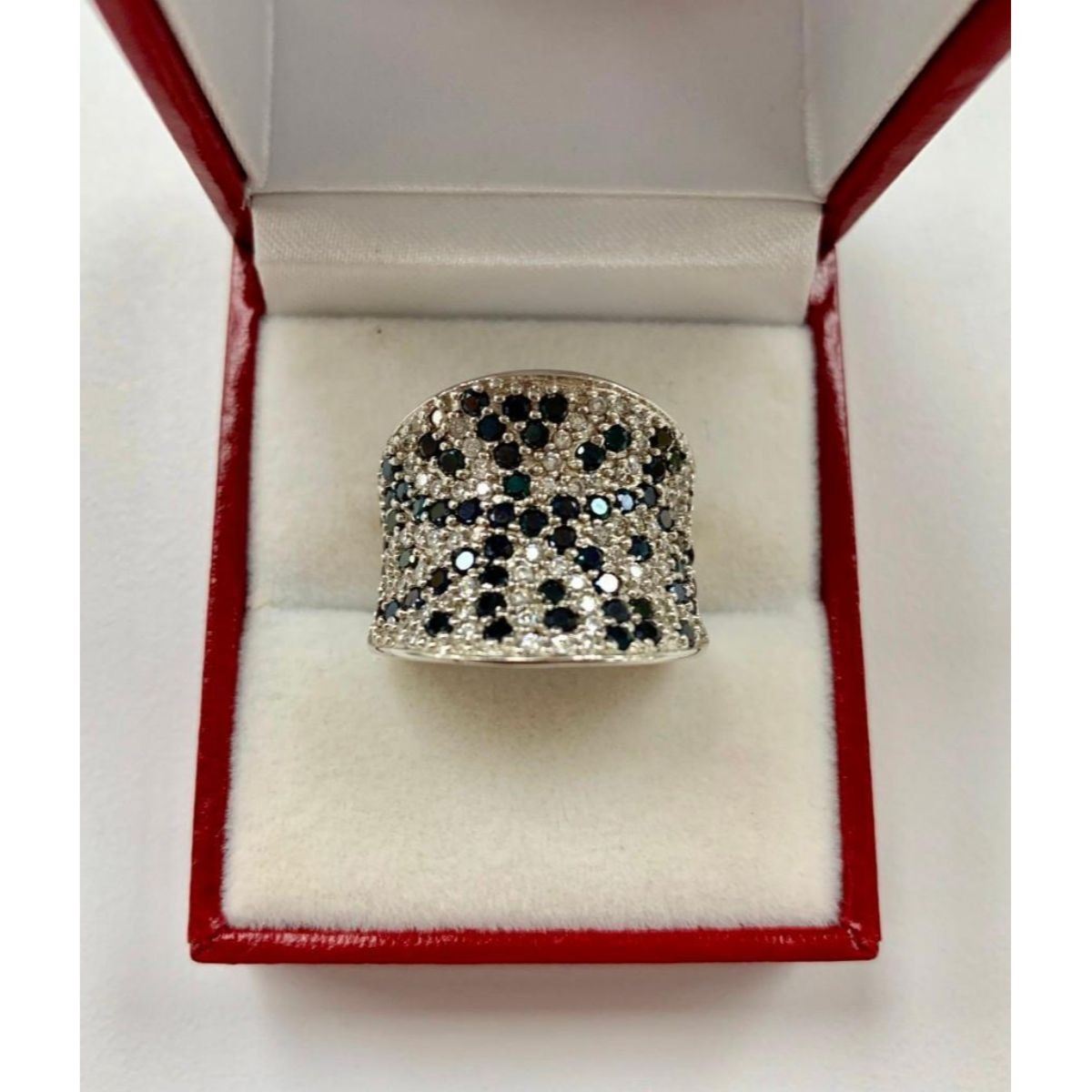 Each stone in this unique ring is a round cut, Bianco diamond, and is at a carat weight of 1/2. The Cluster of Bianco diamonds and blue cut stones draws the attention of the eye with glimmer and sparkles of light. This Bianco diamonds mounted in this ring show-off what is a great piece of jewelry. Bianco® is a trademark that many consider to be synonymous with "the best of the best." Bianco-Diamonds® are not to be confused with a Zircon, with Moissanite by Charles Colvard, simulated Moissanite, simulated Cubic Zirconia or a Crystal. Bianco-Creation-Gemstones® and Bianco-Diamonds® are unique man-made, hand-cut, creations that have been hand selected for their beauty, comparable to the finest geologically mined gemstones. Please view photos for further details.Â