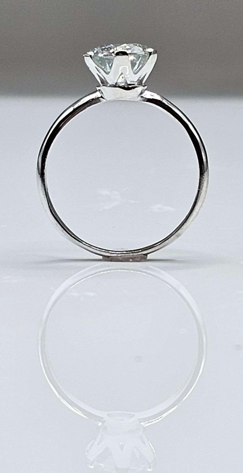 This Huge 3 Ct White E-F VVs1 Simulated Lab Diamond Solitaire is a Brilliant Round Cut Measuring 9 mm. , It is eye clean and bursting out with a full spectrum of colors. It Is Mounted In Tri-Layered 14 Kt White Gold over Solid .925 Sterling Silver with 14 Kt White Gold Overlay, which gives this ring its high polish and shine. With a 9.25 to 9.5 rating on the mohs hardness scale this simulated diamond will test positive for a diamond with almost any diamond tester.***It is also conflict free and earth friendly***. Ring size 7. The total weight is approx. 2.9 grams. Simply Gorgeous!!!