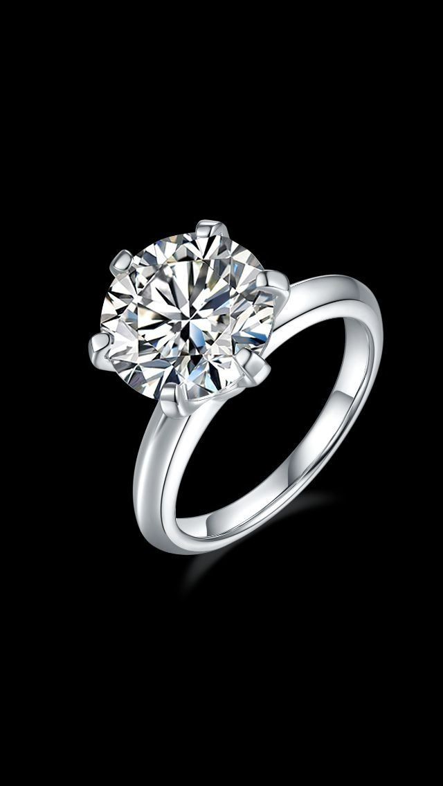 Ladies Sparkling 5 Ct Solitaire VVs1 F-G Fire Moissanite Ring. This 5 Ct Moissanite Centerstone is a VVS1 Brilliant Round 10.5 mm. Cut. The Color is White F-G. It is near flawless and bursting out with a full spectrum of colors. This Fire Moissanite is complimented mounted in .925 solid sterling silver with 14 Kt White Gold Overlay, which gives the ring its high polish and shine. With a refractive index of 2.65-2.69 exhibits more fire and brilliance than a natural diamond. Ring Size 7. Total weight 4.7 grams.