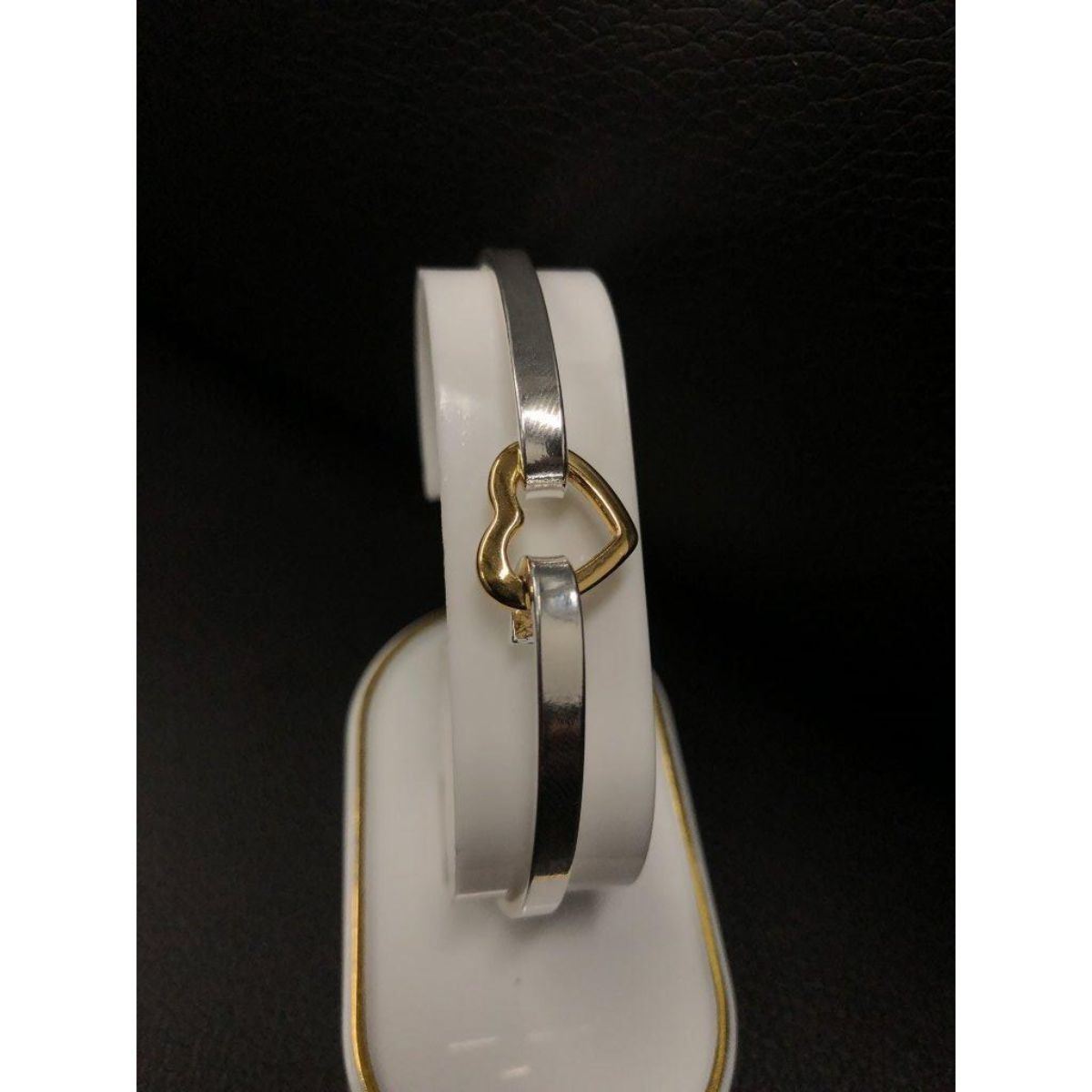 A Ladies Sterling Silver Plated Heart Clasp Bracelet, View Photos For Further Details.