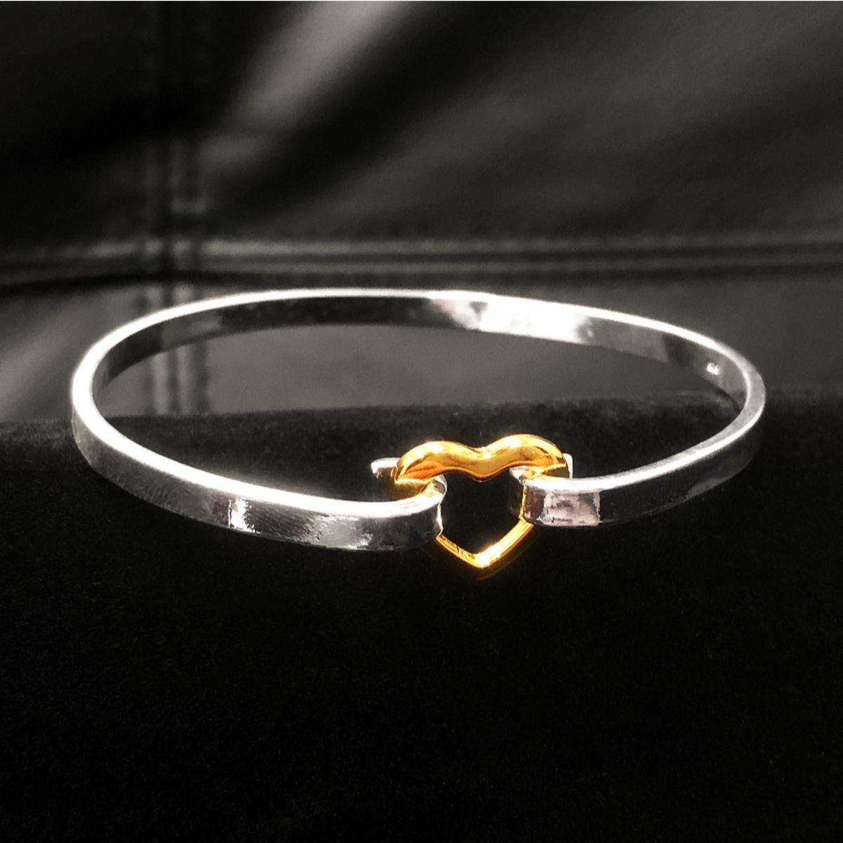 A Ladies Sterling Silver Plated Heart Clasp Bracelet, View Photos For Further Details.