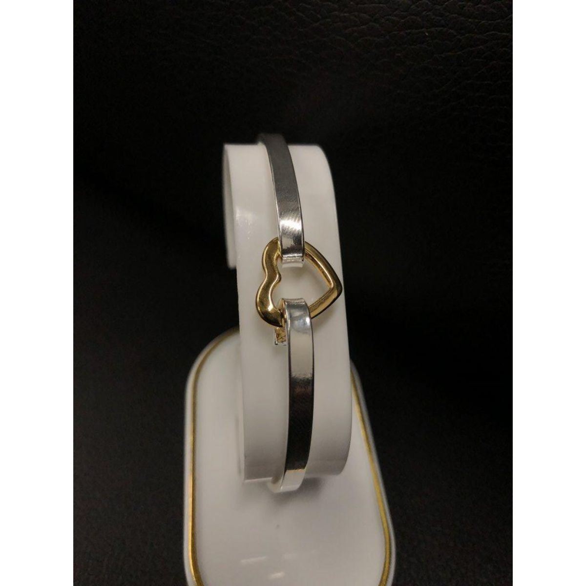 A Ladies Sterling Silver Plated Heart Clasp Bracelet, View Photos For Further Details. Â