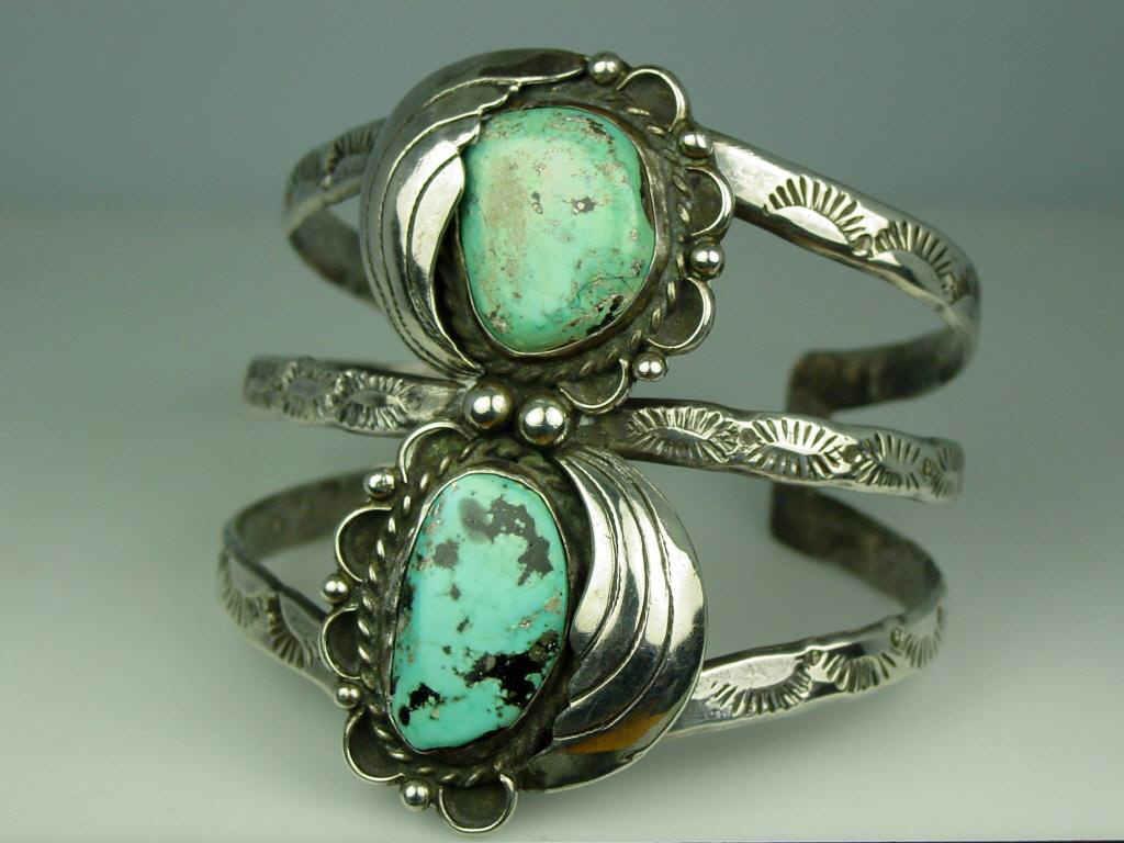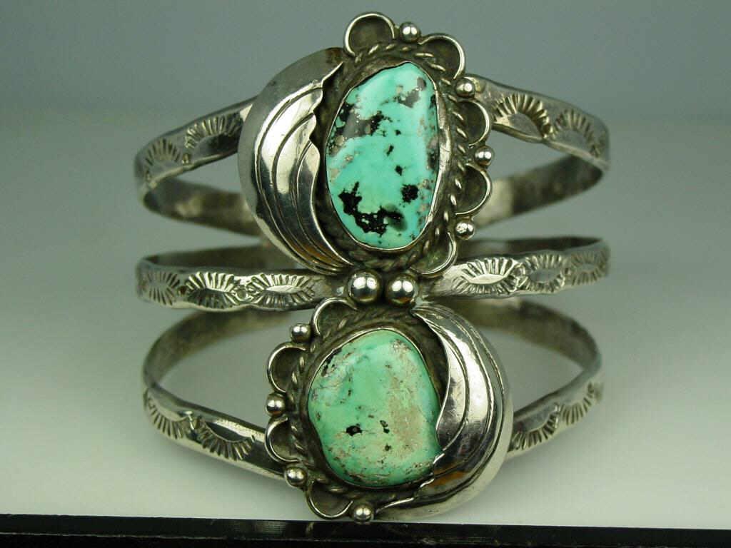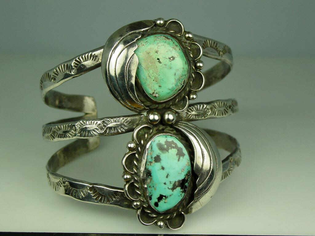 Ladies Sterling Silver Turquoise Bracelet Handmade, signed by artist D.M.T.Handmade, signed by artis