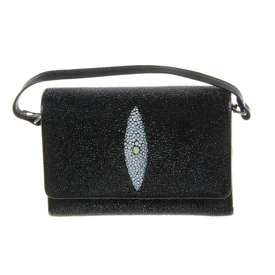 Well made; brand new ladies Stingray Hide black clutch purse/wallet. 6" x 4.5" x 1.75" when folded. Multiple inside sections; one zippered with multiple dividers and a smaller zippered section inside and one with multiple bill and card dividers; with shou