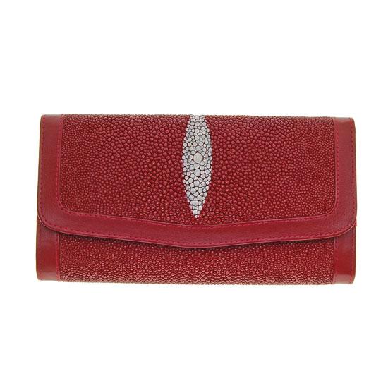 Well made ladies brand new dark red Stingray Hide clutch purse/wallet. Six inside sections, one zippered, 4.5" x 8" x 2" when folded; $395 retail
