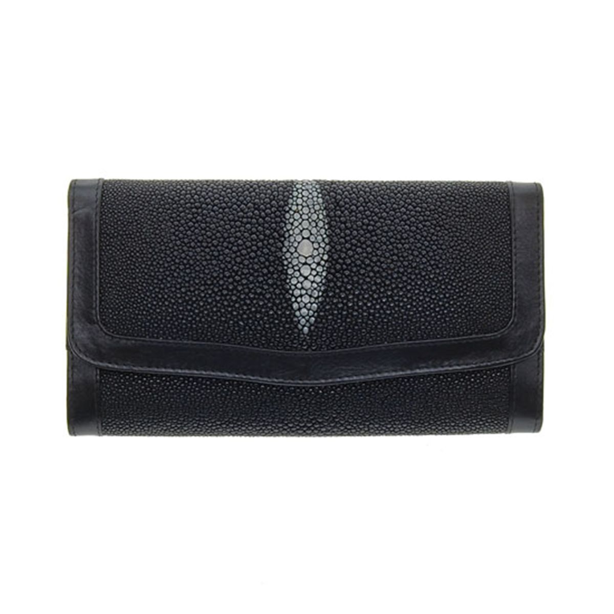 Well made ladies brand new black Stingray Hide clutch purse/wallet. Six inside sections, one zippered, 4.5" x 8" x 2" when folded; $395 retail