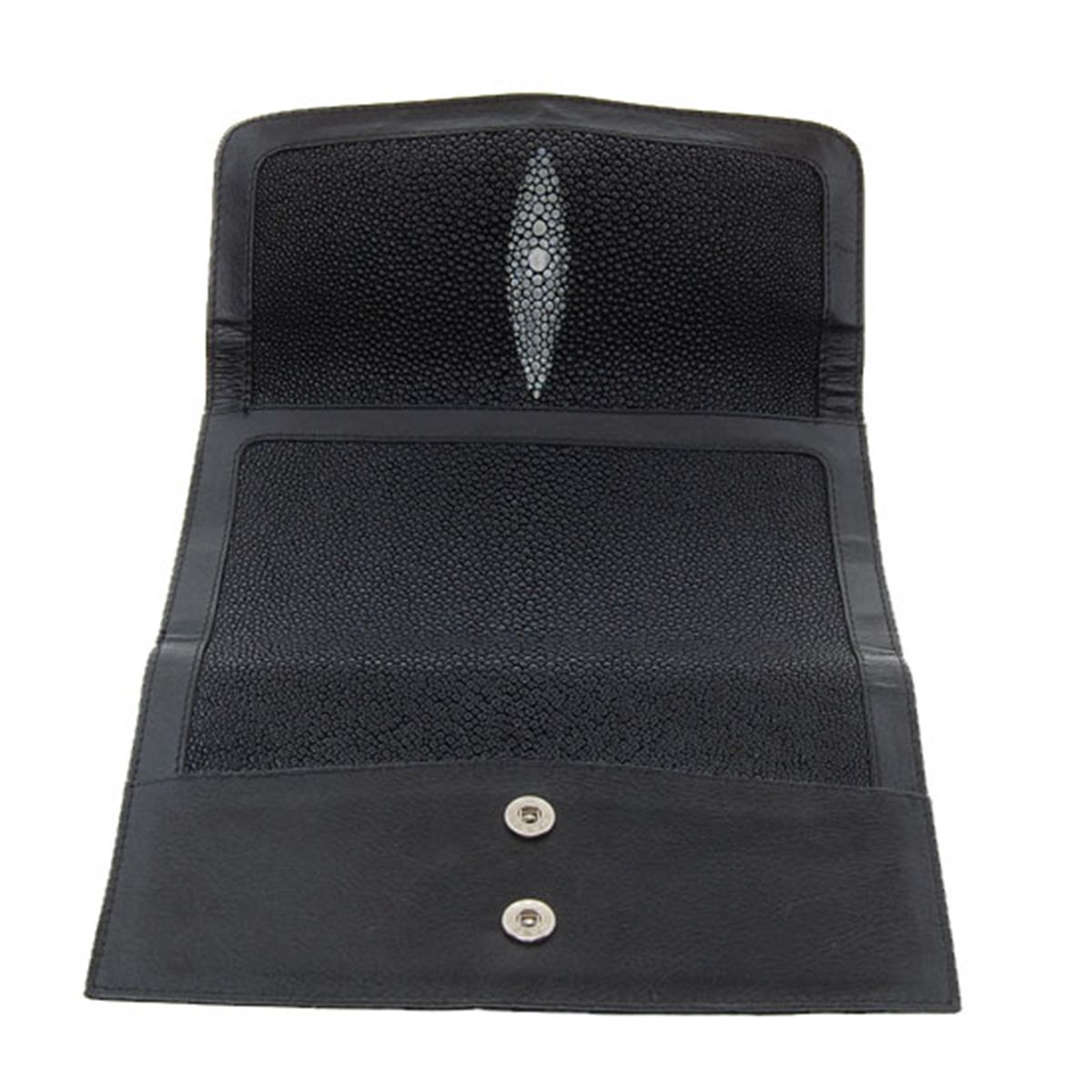 Well made ladies brand new black Stingray Hide clutch purse/wallet. Six inside sections, one zippered, 4.5" x 8" x 2" when folded; $395 retail