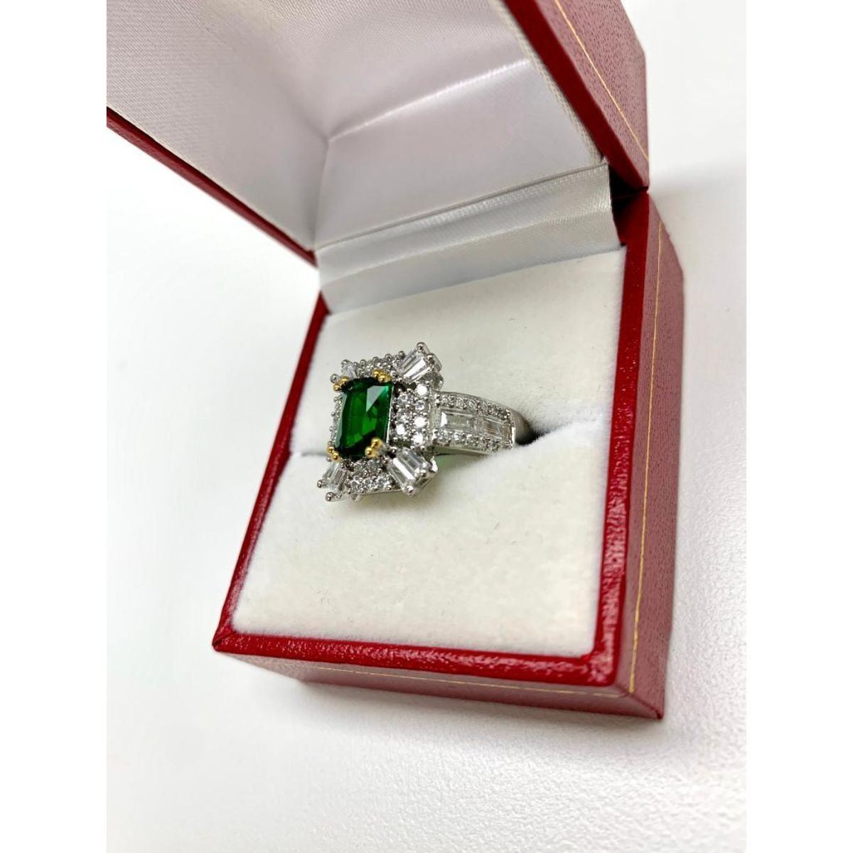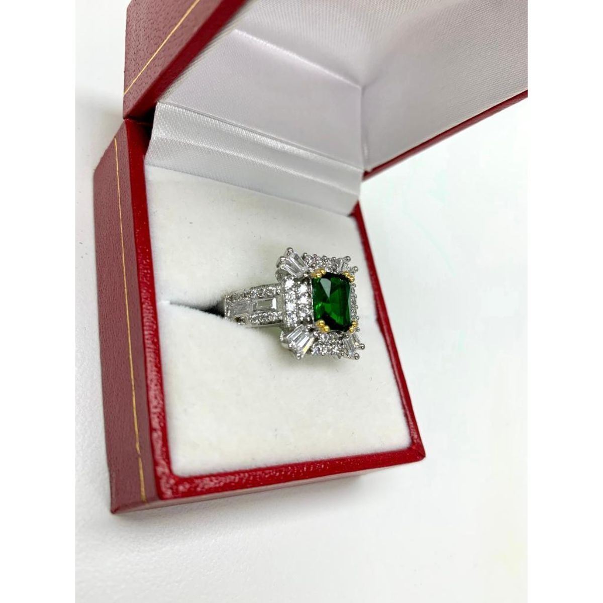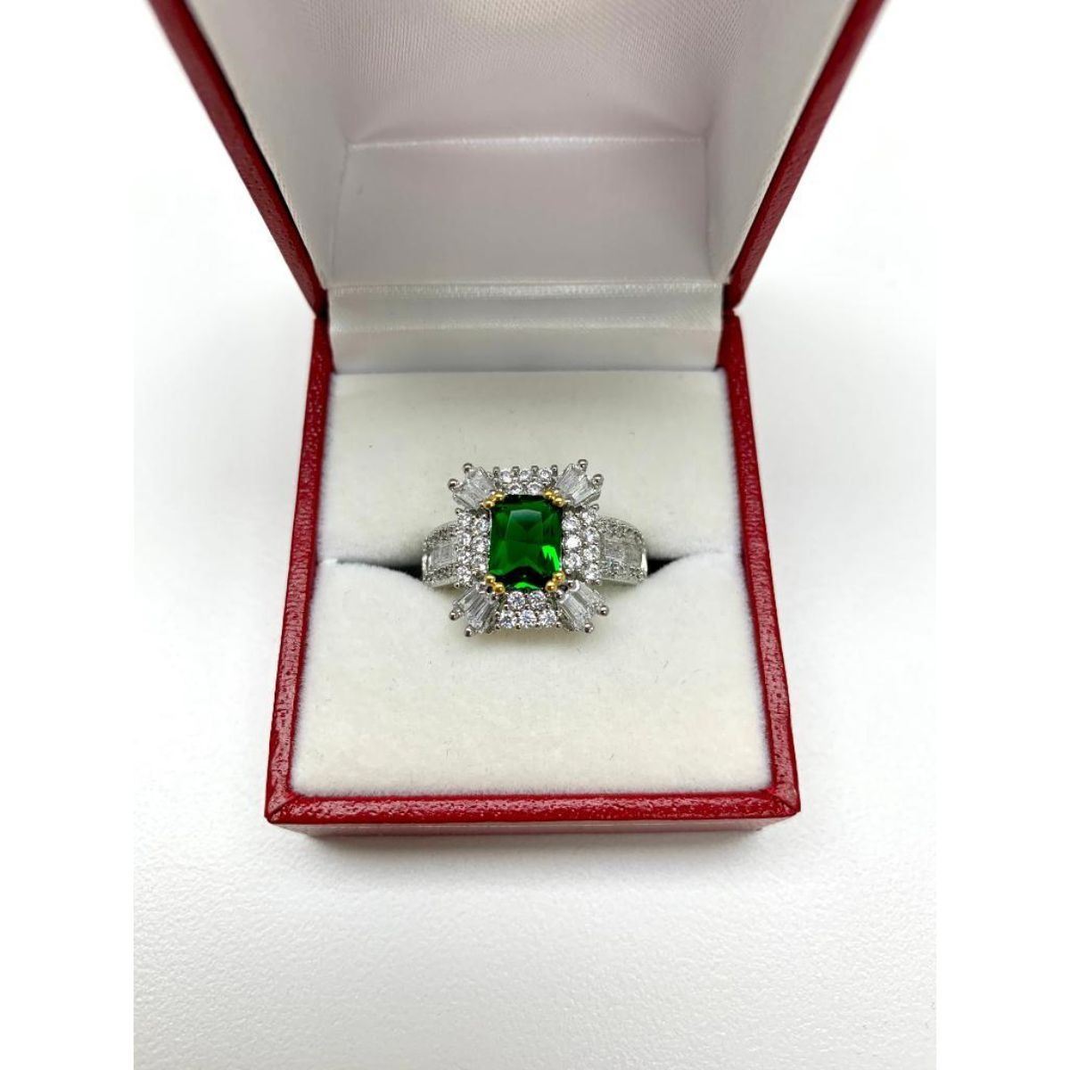 Ladies Size 7 Synthetic Emerald Cut Emerald set in 925 Silver ring. Please view photos for further details.Â