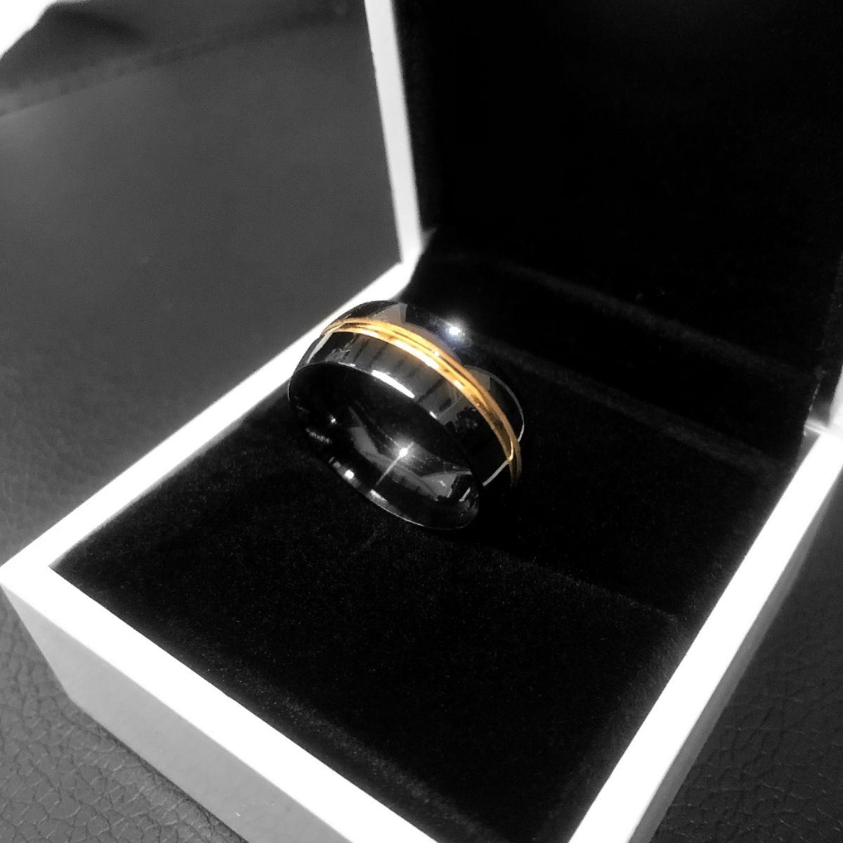 Ladies Titanium Black & Gold Engagement Ring, Brand New, Size 8. Comes In White Enameled LED Ring Box. See Photos For Further Inspection.