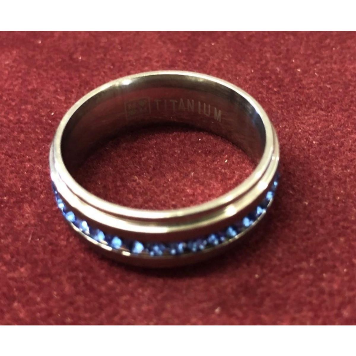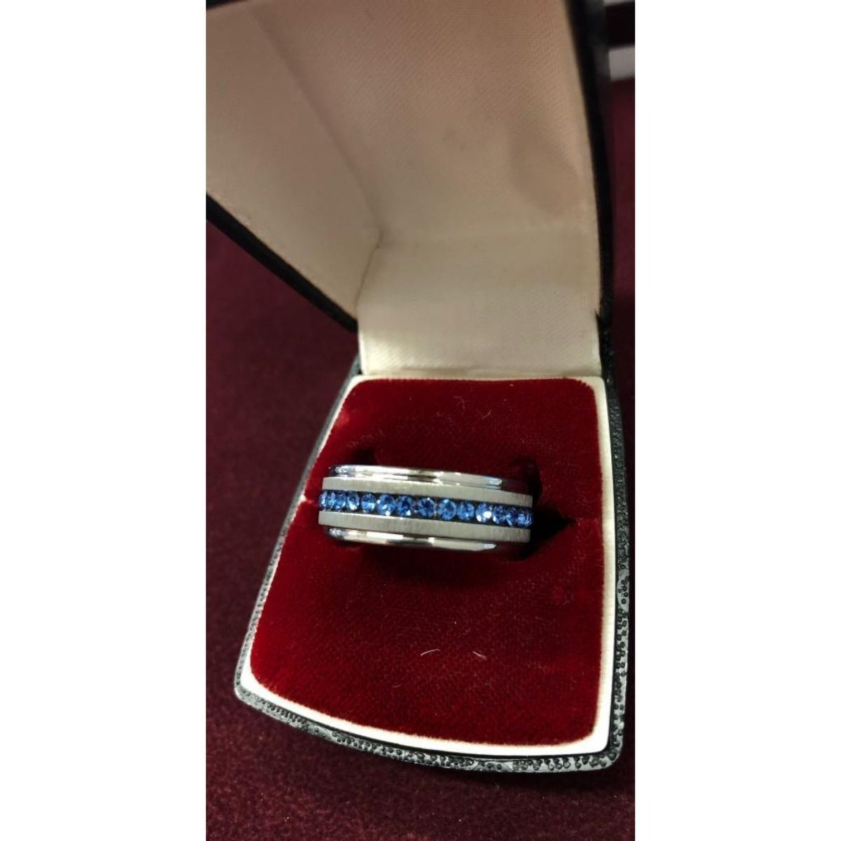 Ladies Titanium Steel Silver Brushed Blue Rhinestone Engagement Ring