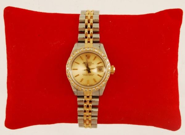 Oyster Perpetual. Date Just. Gold face diamond bezel. Serial #R853693.