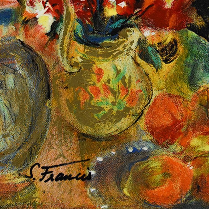 "Ladies With Flowers" is a limited edition serigraph on deckle edge paper by Sevitt Francis, numbered and hand signed by the artist. Includes Letter of Authenticity. Measures approx. 36" x 26" (image).