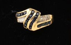 Ladies ring in 14k yellow gold set with square sapphires and diamonds. Est. $400-$500