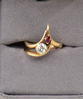 Ladies ring set with a round brilliant diamond weighing .06ct and a marquee ruby .08ct. Est. $1,200-$1,500