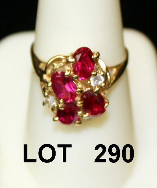 Ladies ring set with four oval rubies (enhanced) and three diamonds. Est: $600 - $1,000