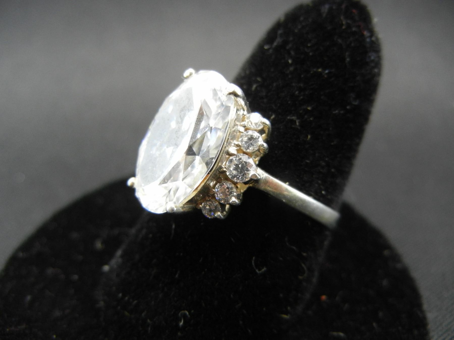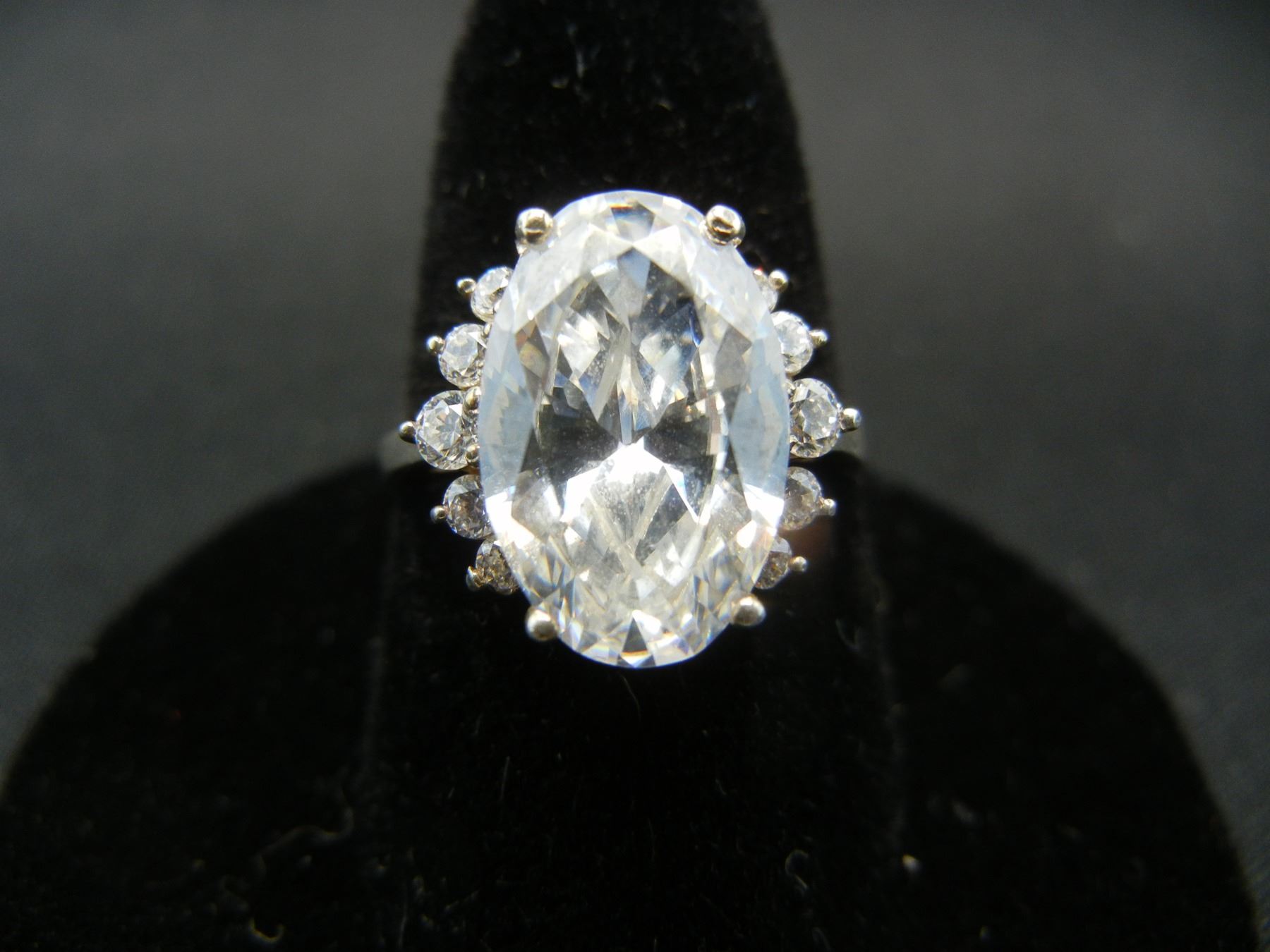 Ladies sterling ring size 8 with large oval cubic zirconia stone. What BLING!