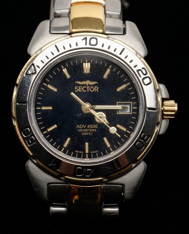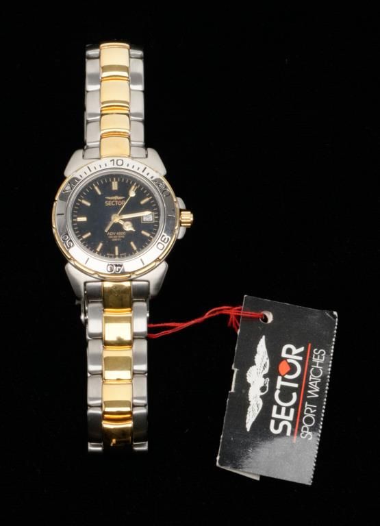 Ladies wristwatch in two tone design by Sector in mint condition. Original retail price tag still attached $550. Est.: $100-$200