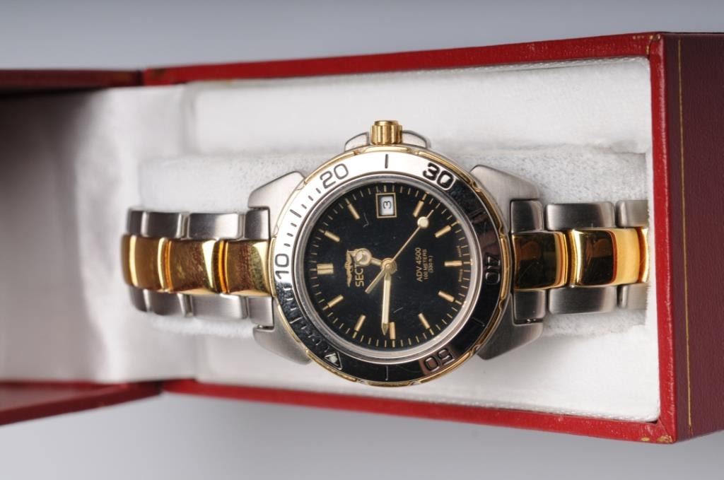 Ladies wristwatch in two tone design by Sector in mint condition. Original retail price tag still attached $550. Est.: $70-140