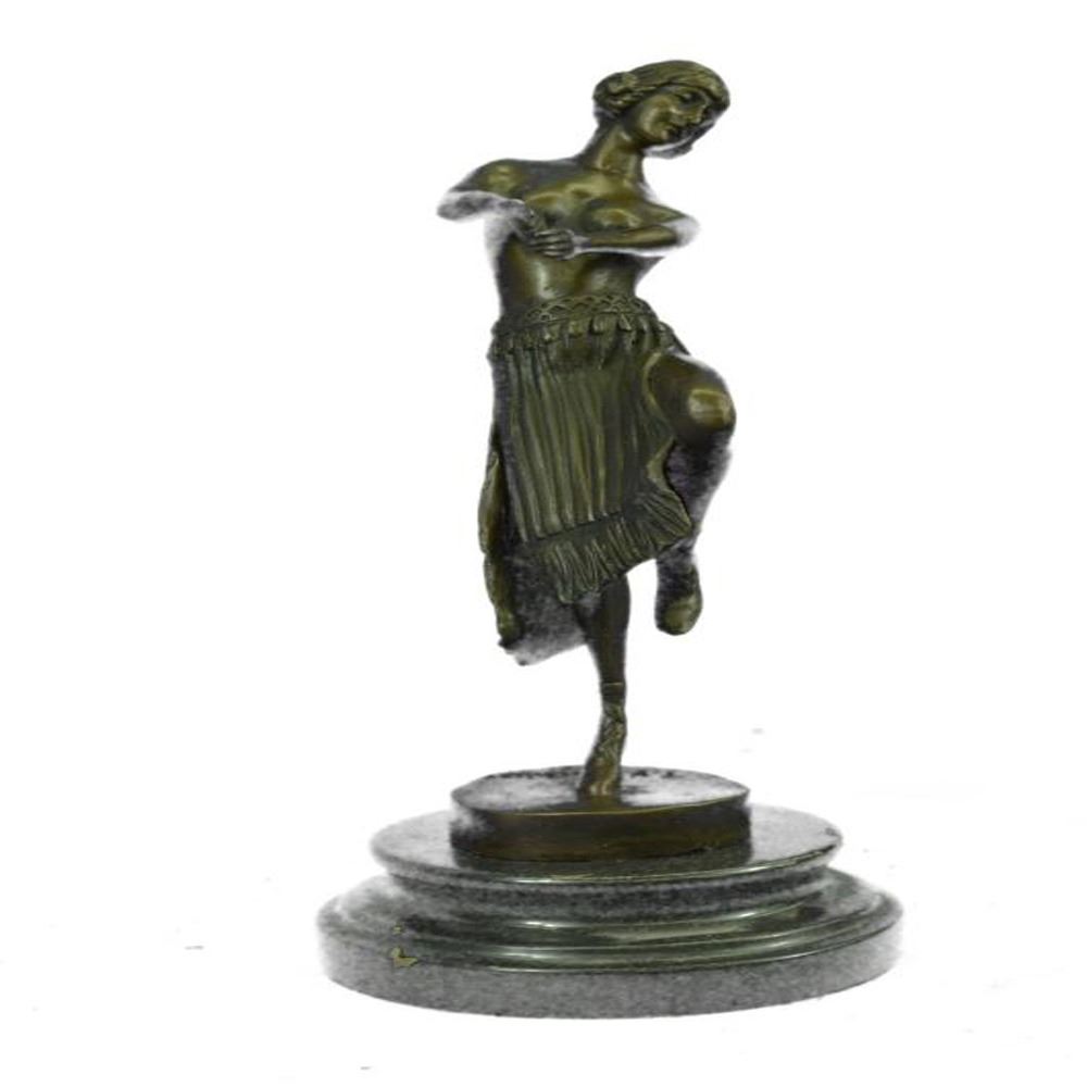 Feeling of motion and excitement conveyed by dancers Costume, gesture and facial expression. Smooth quality chasing of figure. This Bronze Sculpture was crafted using the lost wax method and is set on a marble base. Dimensions: Height 9 X Width 4 inches. Weight: 4 LBS.
