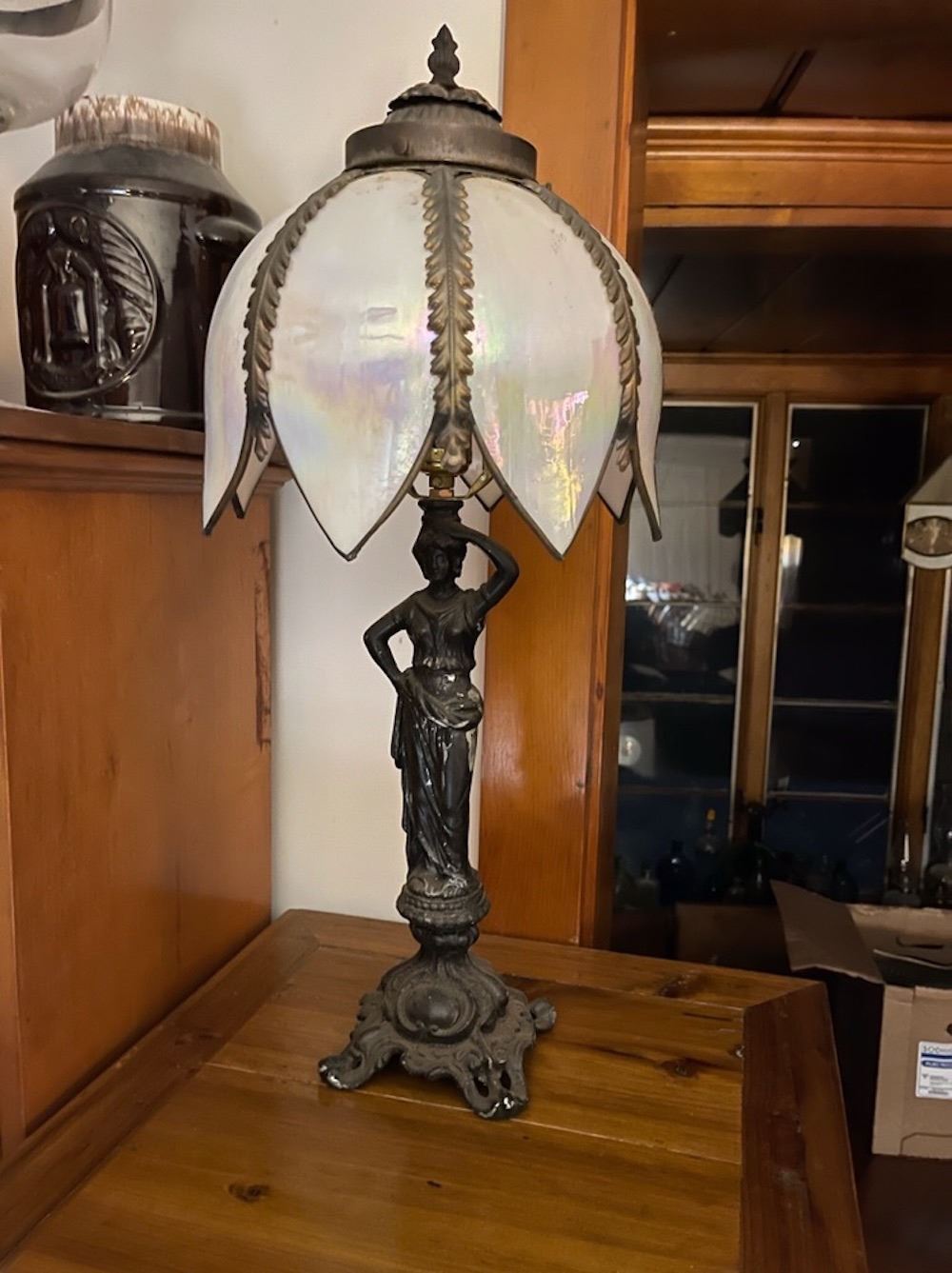 Lady flower panel lamp with opalescent glass shade, needs to be rewired, from the lifetime collection
