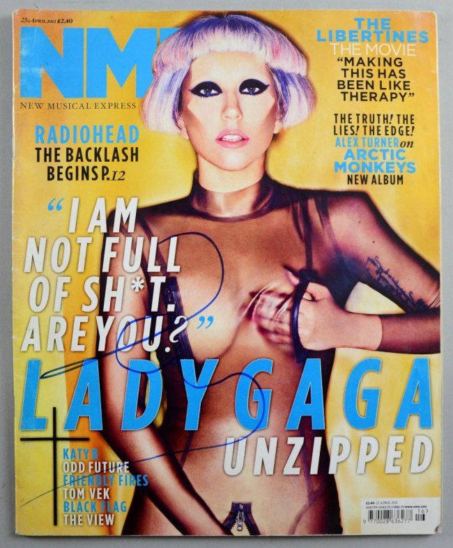 Lady Gaga (1986- ) American Pop Singer, signed NME magazine dated 23 April 2011 Provenance: Signed 2012 in London at the Lanesborough Hotel