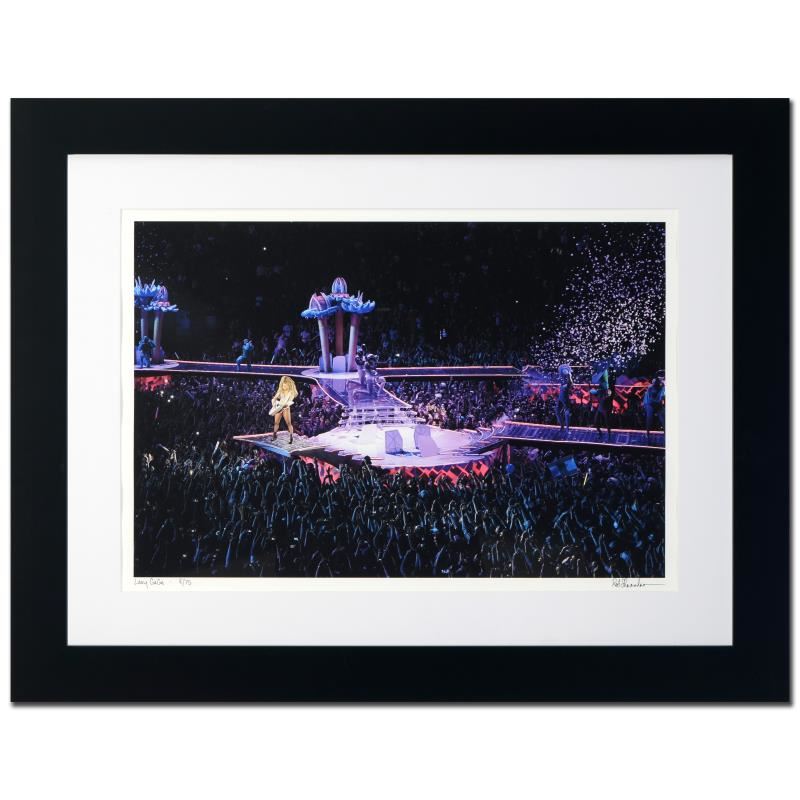 "Lady Gaga" is a limited edition giclee on paper, numbered and hand signed by acclaimed music industry photographer Rob Shanahan. This piece comes custom framed. Includes Certificate of Authenticity. Measures approx. 32" x 25" (with frame), 22" x 14.5" (image).