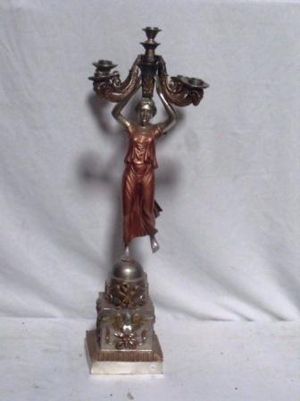 Bronze statue by Serengelli. 38" H, 13" W, 8.5" D. Holds 5 tapered candles.