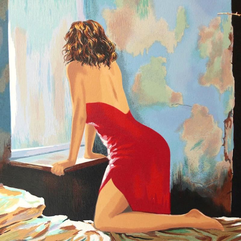 "Lady In Red" is a limited edition Serigraph on Paper by Alexander Borewko. The piece is numbered, hand siged by the artist, and come with a letter of authenticity. Measures approximately 16.5" x 19".