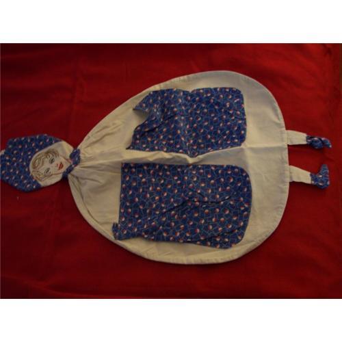 I have had a collection of these for a number of years but need to sell some due to lack of room.This one has a great embroidered face.Looks like Betty Crocker.Measures approx.37" long from top of hanger to feet.Great space age looking material.I have three more I am listing if you love these laundry bags as much as I do.
