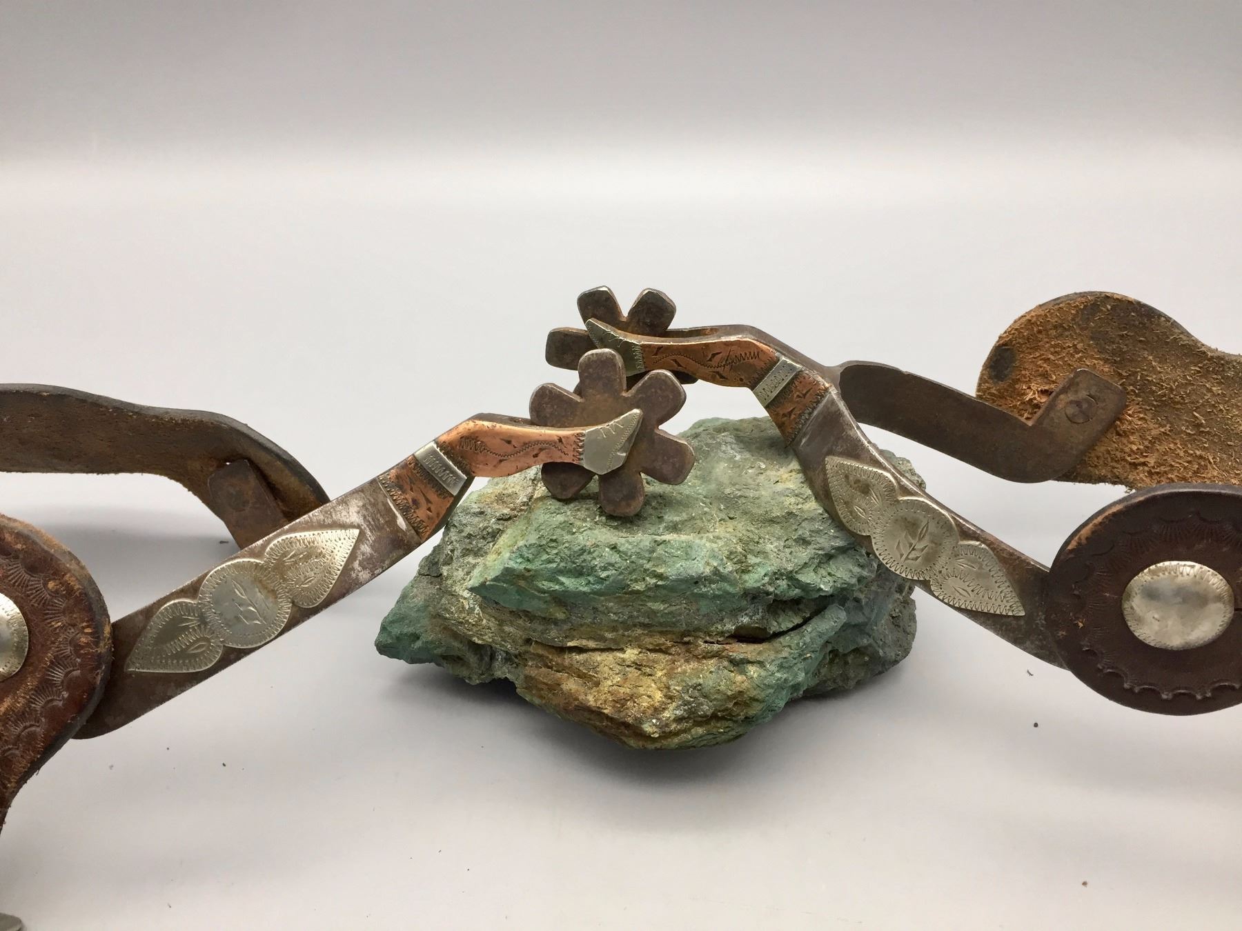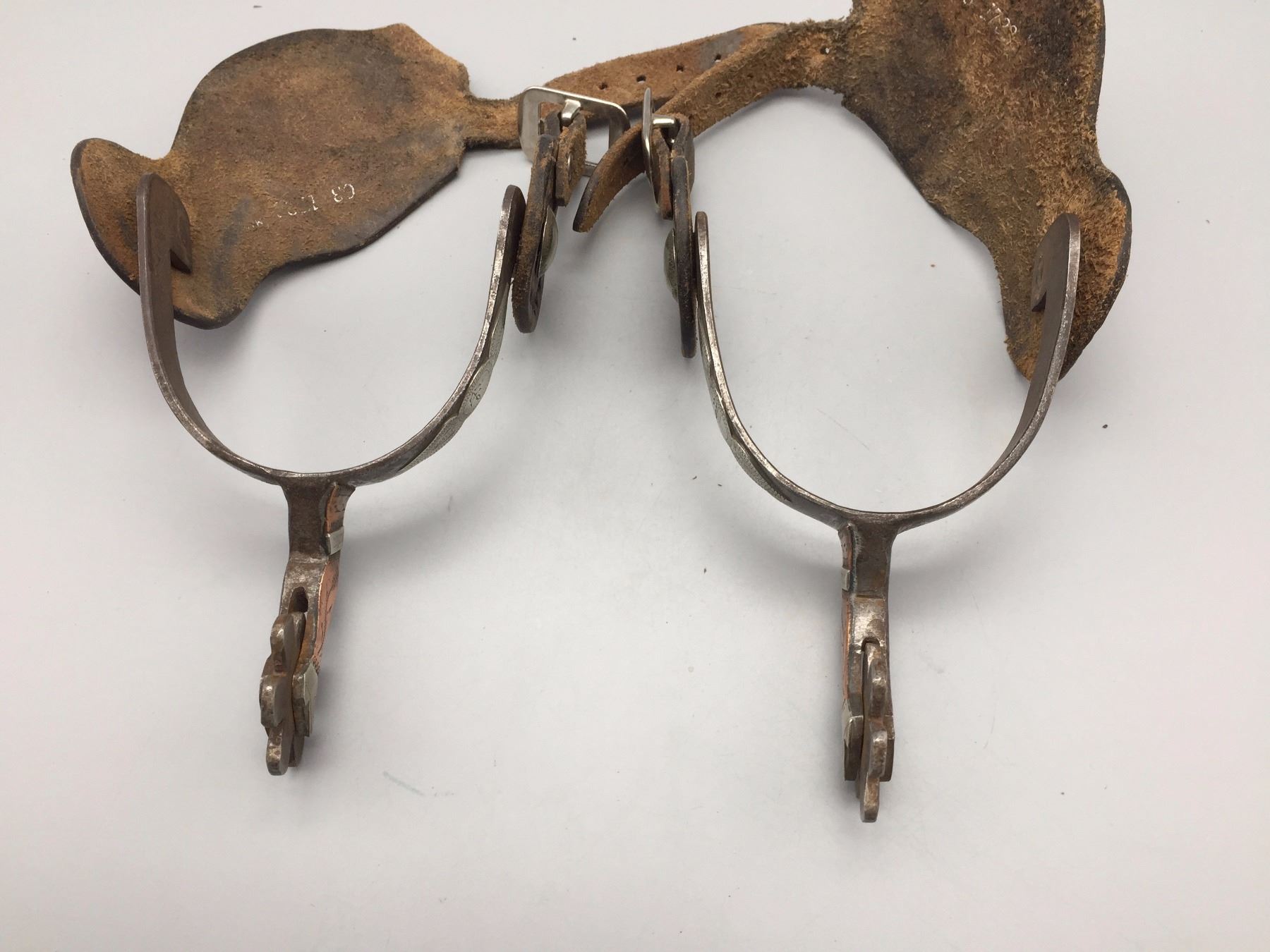 Description: Lady leg shanks on these handmade spurs by Carl Hall. Has leathers. Maker: Carl Hall. Approx. Age: Vintage. Size: Heel opening is 3 1/2“. Heel bands are 3/4“ wide. Shanks are 2 3/4“ long including the rowels. Condition: Good for their age, normal wear expected. Please look closely at the pictures - they are an important part of our description. Shipping: There will be a $5 handling / packaging fee for shipping this lot. The actual cost of postage will be added on top of that.