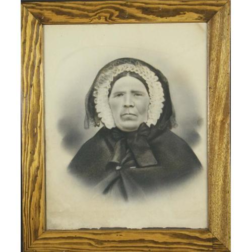 This is a very realistic portrait of what appears to be a 19th century woman. The clothing in this drawing is very well drawn, the smooth transitions from light to dark on the folds combined with the subtle curves of the drapery and translucent appearance of the lace is very convincing. The tough expression on the woman?s face reflects the hard working life of the women of that era. Excellently render and perfectly framed in an appropriate stained wood frame that is void of embellishments which fits the characteristics of the subject matter. The entire piece is 24.5? x 20?.