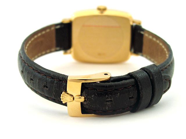 Lady Rolex 18K Yellow Gold Cellini Watch. Silver Dial. 18K Yellow Gold Bezel. Brown-Leather Strap. S