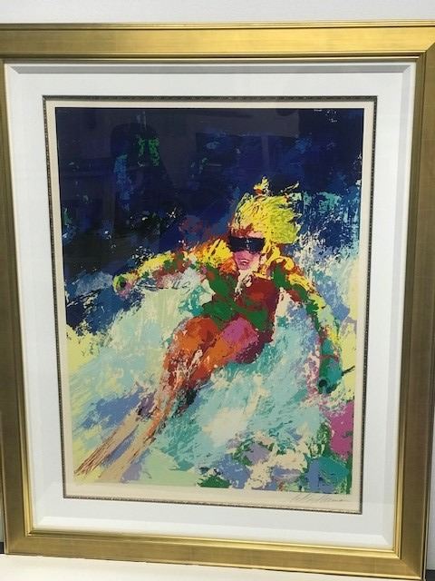 "Lady Skier" by LeRoy Neiman (1921-2012) - Hand signed limited edition serigraph AP (Artist Proof) - Framed size = 43" wide x 54" tall