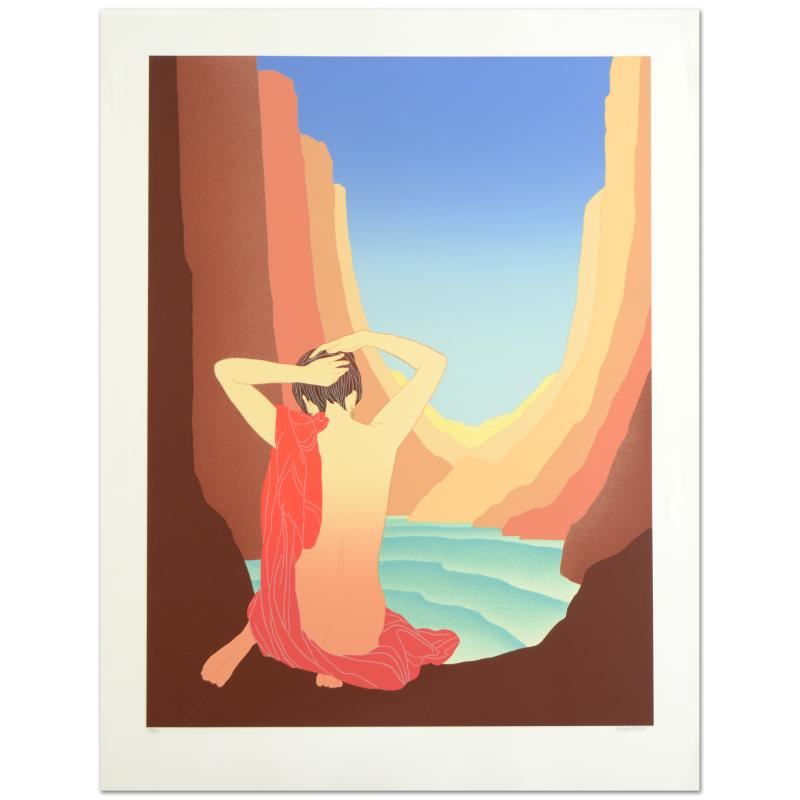 "Lady of the Canyon" is a limited edition serigraph on paper by Derrick Brown, numbered and hand signed by the artist! Includes Certificate of Authenticity! Measures approx. 36" x 47" (with border), 37" x 40" (image).