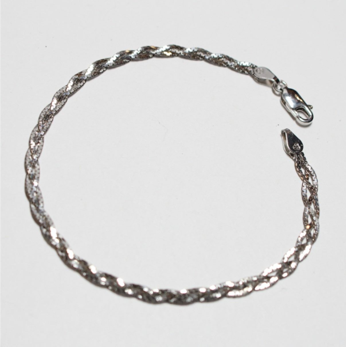 Lady's 10K White Gold Braided Bracelet with Lobster Clasp. Measures 7 1/4" in length with a weight of 2.74 grams.