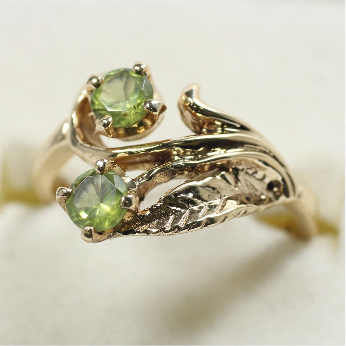 Lady's 10K Yellow Gold Custom Peridot Ring - Size 5 1/2. 3.2 grams.