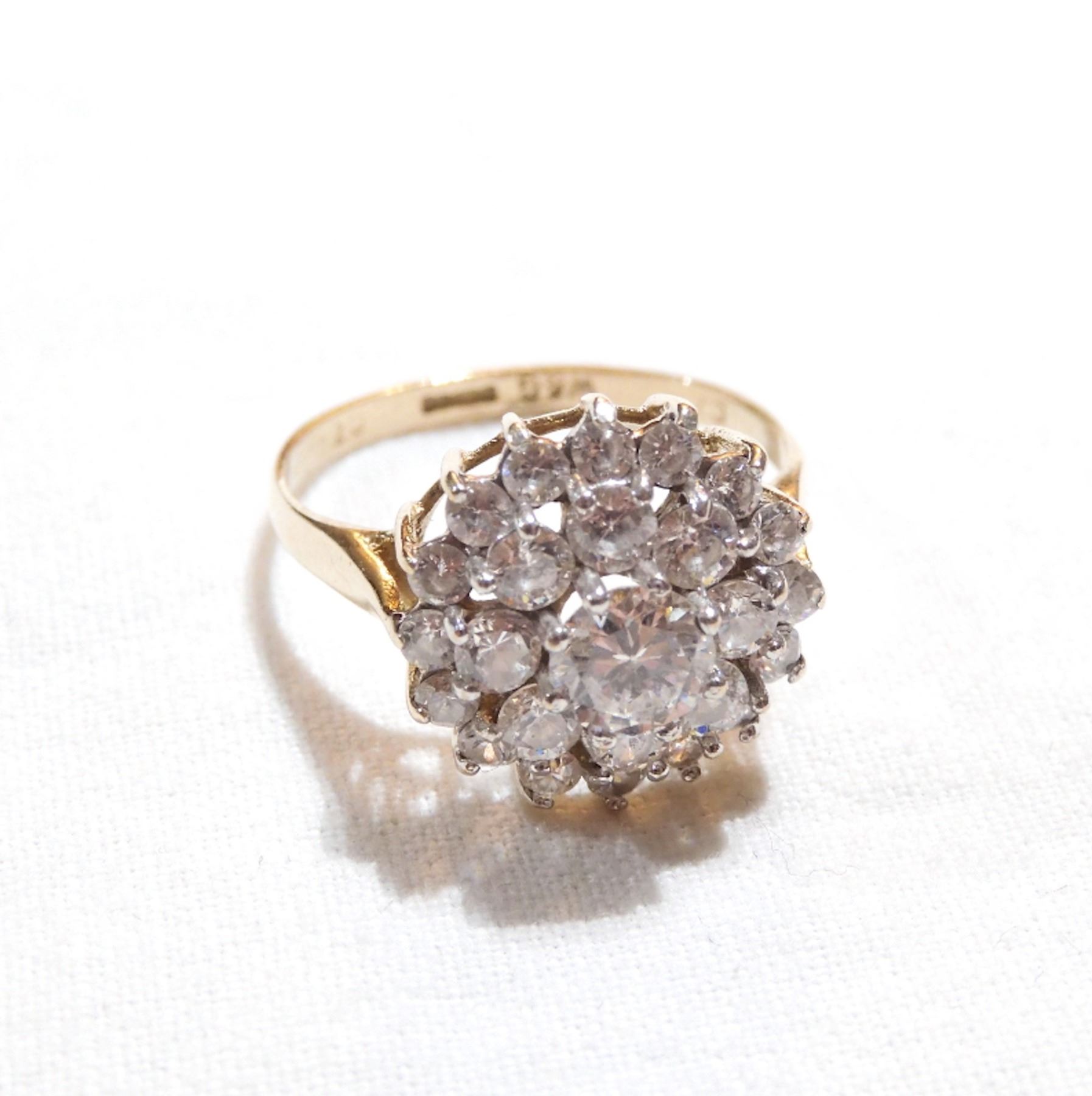 Lady's 10k Cubic Zirconia Cluster Style Ring - Size 7 3/4. Total weight of 3.15 grams.