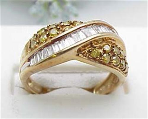 Lady's 10kt yellow gold ring with baguette diamonds and enhanced yellow diamonds 3.4gr size