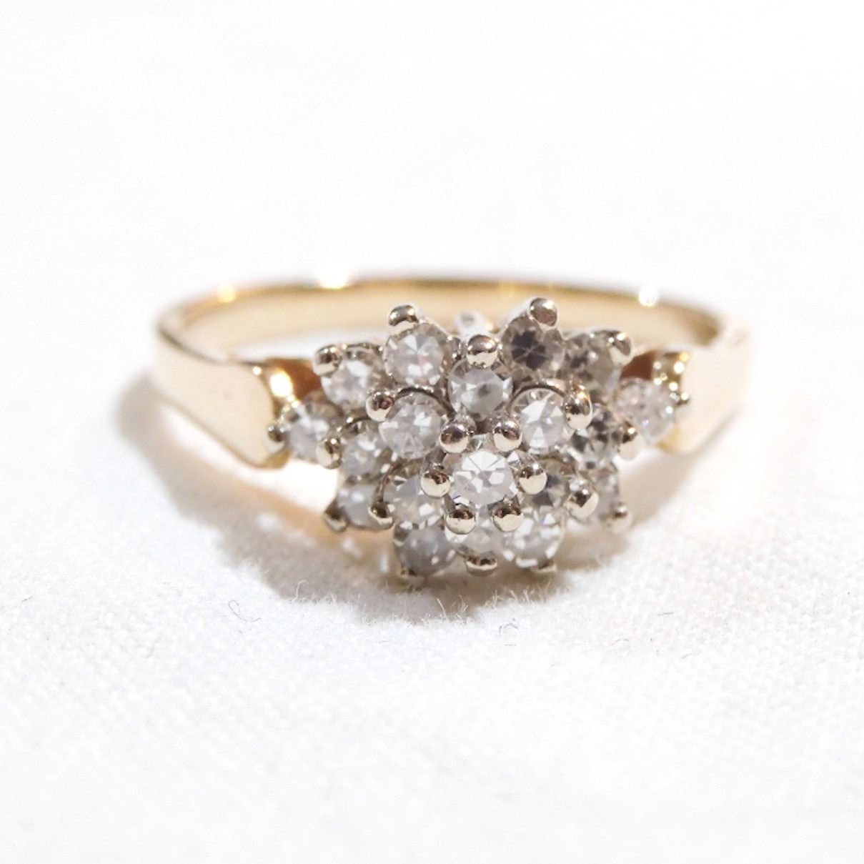 Lady's 14K Yellow Gold Diamond Cluster Ring - Size 7.5. Total weight of 3.3 grams.