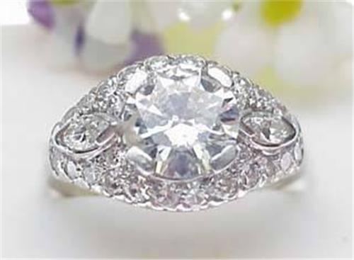 Lady's 1930's platinum ring with a 2.03Ct round diamond center stone Clarity I 1, Color I with 1Ctw round and marquise cut diamonds size 8.5