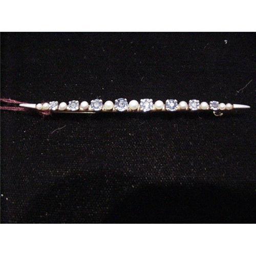 Lady's Circa 1910 14Kt yellow gold, sapphire and pearl barpin made by Bippart (torch hallmark) a famous East Coast American maker. Lovely rich sapphires prong set accented with lovely lusterous peg set pearls. Great old piece. White gold tips on each end. Lovely old barpin. Great stones!! Wonderful look.
