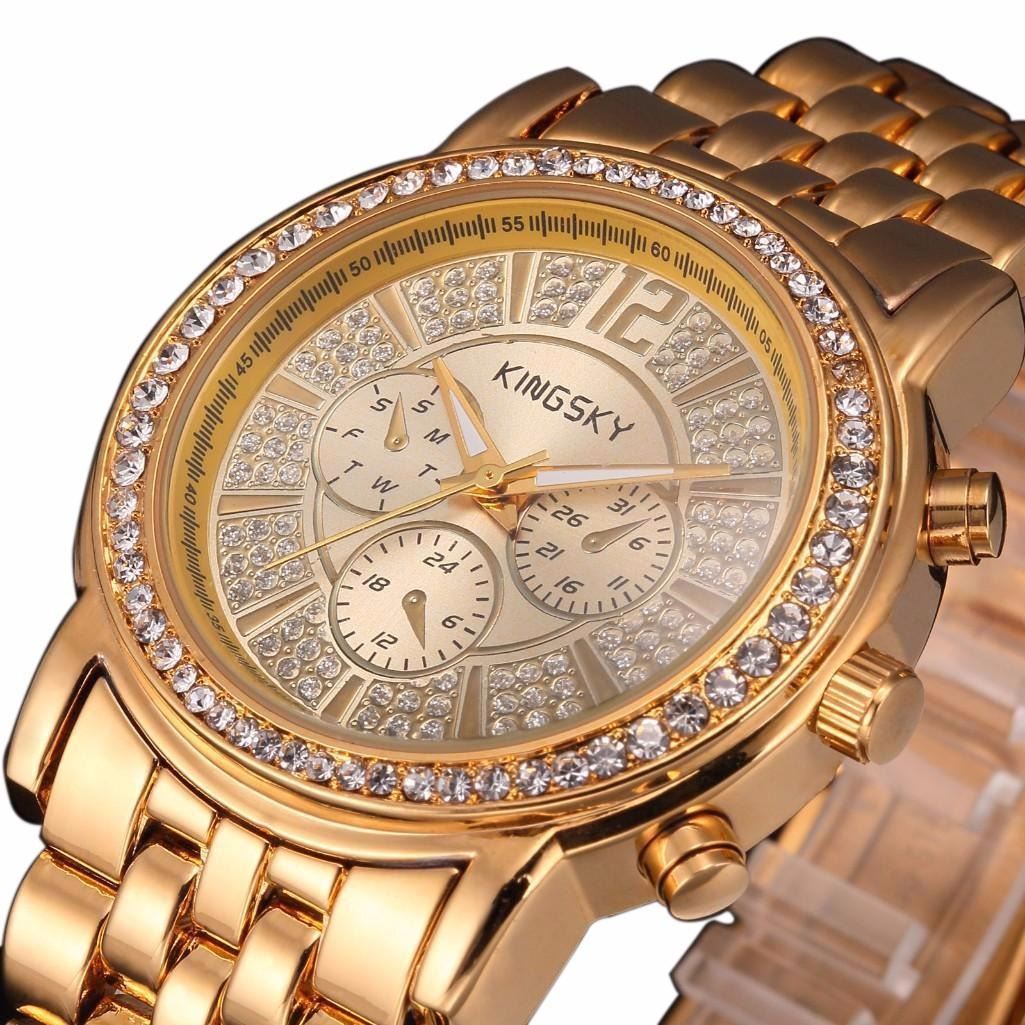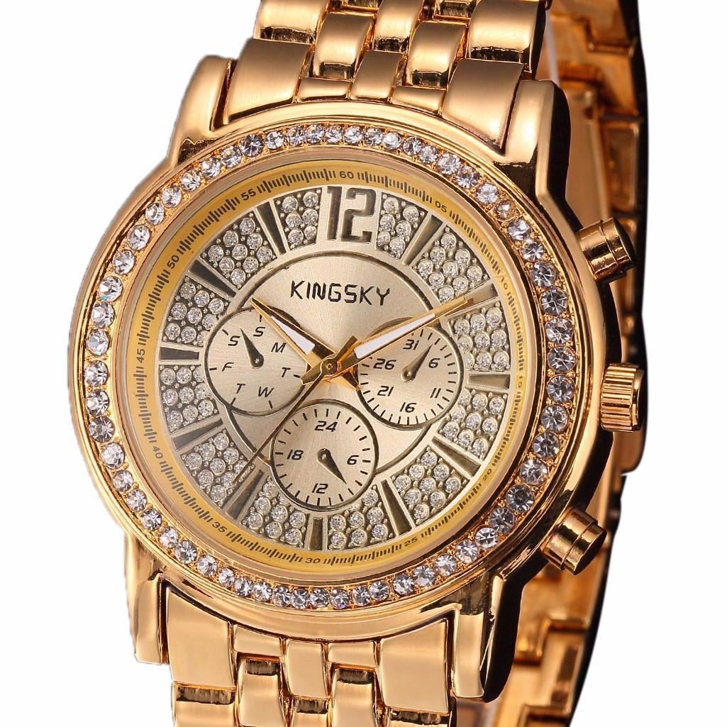Lady's Gold & Crystal Quartz Bracelet Watch