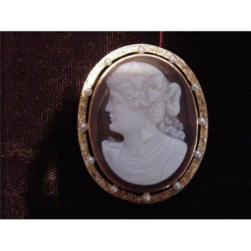 <tr><td>Title:Lady's Hardstone Cameo, Pearl & 14 Kt Yellow</td></tr>